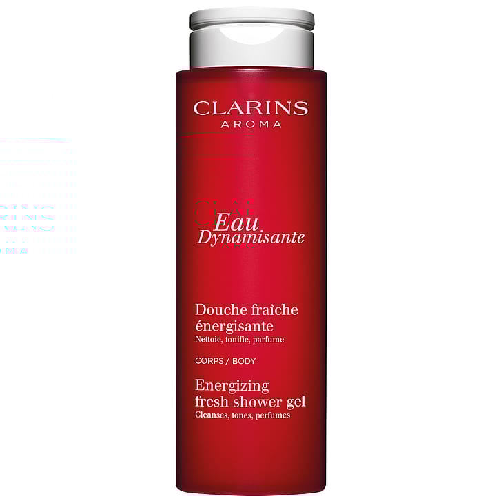 Ikoninen Clarins-aromatuoksu Eau Dynamisante nyt puhdistavana, ihanan virkistävän tuoksuisena suihkugeelinä! Clarins Eau Dynamisante -suihkugeelin täyteläinen koostumus sisältää eteerisiä Eau Dynamisante -öljyjä ja kosteuttavaa aloe vera -uutetta. Geelimäinen koostumus puhdistaa hellävaraisesti, kosteuttaa ihoa ja antaa miellyttävän tuoksun. 92 % luonnollisia ainesosia.