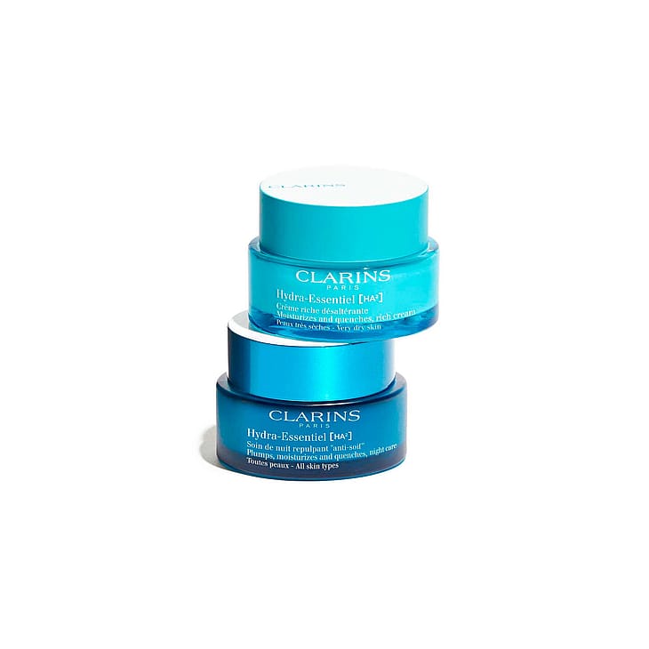Clarins Hydra-Essentiel Cream Rich Cream Very Dry Skin -kasvovoide sisältää hyaluronihappoa ja ekologista leaf of life -uutetta, jotka kosteuttavat ja ravitsevat ihoa tehokkaasti ja tekevät siitä täyteläisemmän näköisen. Clarins-laboratorioiden kehittämä Hyaluronic Power Complex auttaa tehostamaan ihon omia kosteutusmekanismeja ja säilyttämään sen kosteusvarantoja. Päivävoiteen voidemainen koostumus sulautuu iholle välittömästi tehden siitä täyteläisemmän ja joustavamman sekä antaen uudistunutta hehkua ja miellyttävän tunteen.