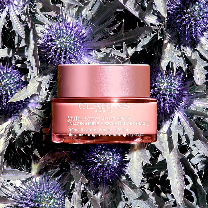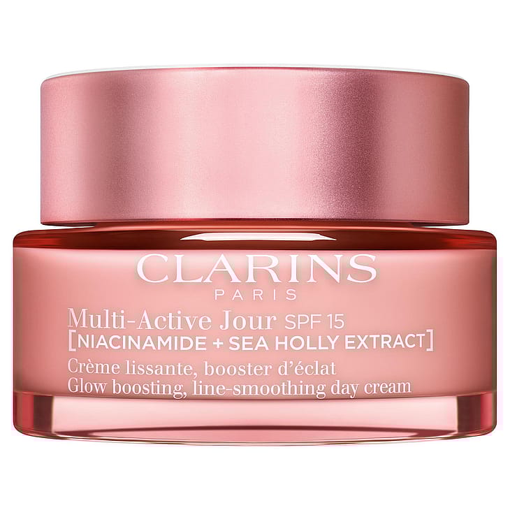 Kun iho altistuu intensiiviselle arjelle ja elämäntyylille, on sen säilytettävä energiansa ja puolustuskykynsä – Multi-Active Day SPF 15 All Skin Types voi auttaa siinä ainutlaatuisella ainesosayhdistelmällään: Skin Charger Complex sisältää niasiiniamidia ja piikkiputkiuutetta – tehokas kaksikko, joka auttaa häivyttämään ensimmäisiä ikääntymisen merkkejä. Tisteliuutteella on elinvoimaa antavia ominaisuuksia, jotka antavat iholle uutta energiaa. Mansikkapuu-uute auttaa kohentamaan ihon tekstuuria ja häivyttää ihohuokosia. SPF 15 suojaa ihoa UV-säteiden aiheuttamilta vaurioilta. Lisäksi koostumus sisältää Clarins Anti-Pollution Complex -yhdistelmän.