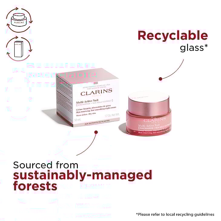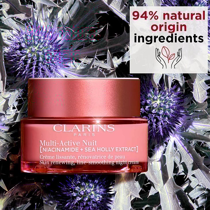 Multi-Active Night Dry Skin on silottava ja uudistava yövoide, jonka täyteläinen koostumus sopii kuivalle ihotyypille. Iho rasittuu erityisesti päivän aikana, joten yö on erinomainen tilaisuus edistää sen uusiutumista. Ihon uusiutumista edistävä yövoide sisältää 92 % luonnollisia ainesosia ja tehokkaan Skin Charger Complex -yhdistelmän niasiiniamidia ja piikkiputkiuutetta, jotka auttavat häivyttämään ihon ensimmäisiä ikääntymisen merkkejä. Ihon suojamuurin toiminto vahvistuu, iho saa uudistunutta hehkua ja se säilyttää nuorekkaan ulkonäkönsä. Lisäksi koostumus sisältää tehokkaan tetrapeptidin, joka auttaa ihoa uusiutumaan yön aikana. Herätessäsi iho näyttää levänneeltä, sileämmältä, kosteutetulta ja hehkuvalta.