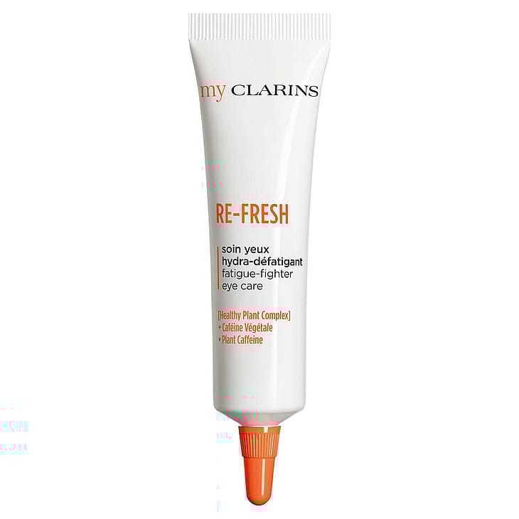 MyClarins Re-Fresh Fatigue-Fighter Eye Care on raikas silmänympärysgeeli, jonka virkistävä efekti häivyttää väsymyksen merkkejä välittömästi (tummat silmänympärykset ja turvotus). Geelivoiteen raikastava koostumus virkistää silmänympärysihoa, ja metallikuula antaa hierovan vaikutuksen. Kasviuutteita sisältävä koostumus auttaa häivyttämään tummia silmänympäryksiä ja turvotusta näkyvästi antaen raikkaan ja levänneen ulkonäön. Geelivoiteen sulautuva koostumus antaa välittömästi raikkaan tunteen.