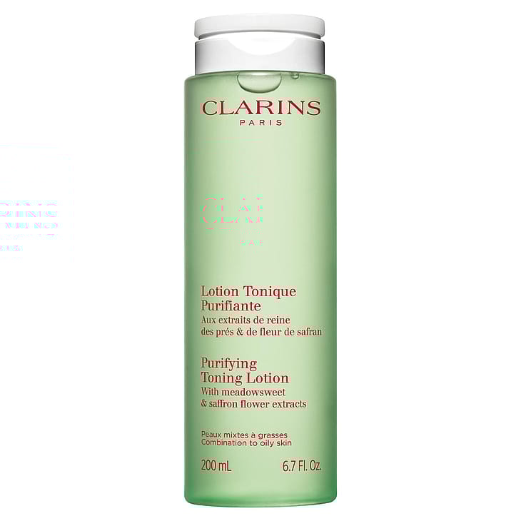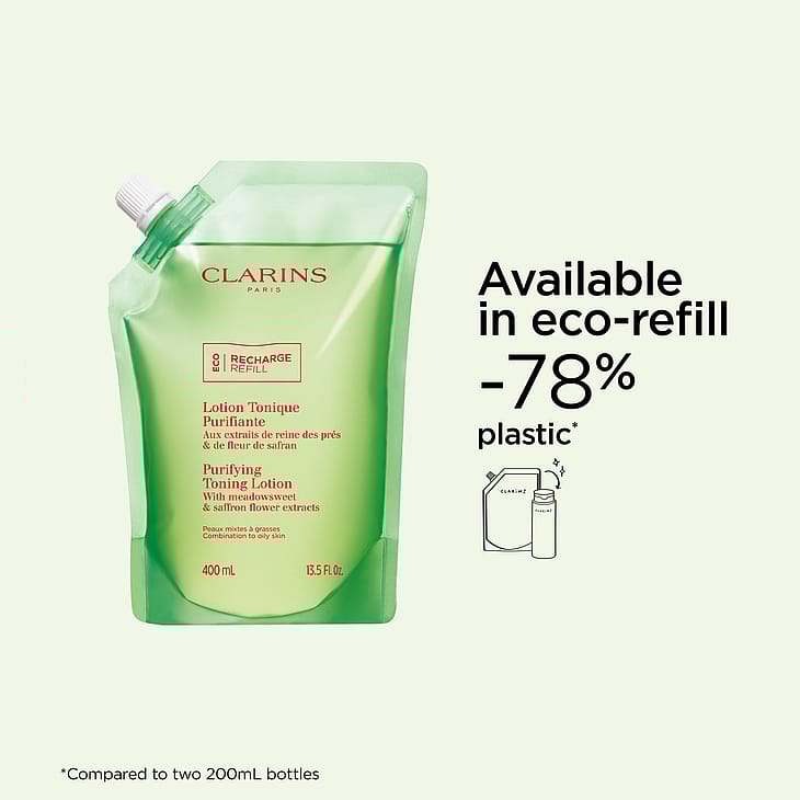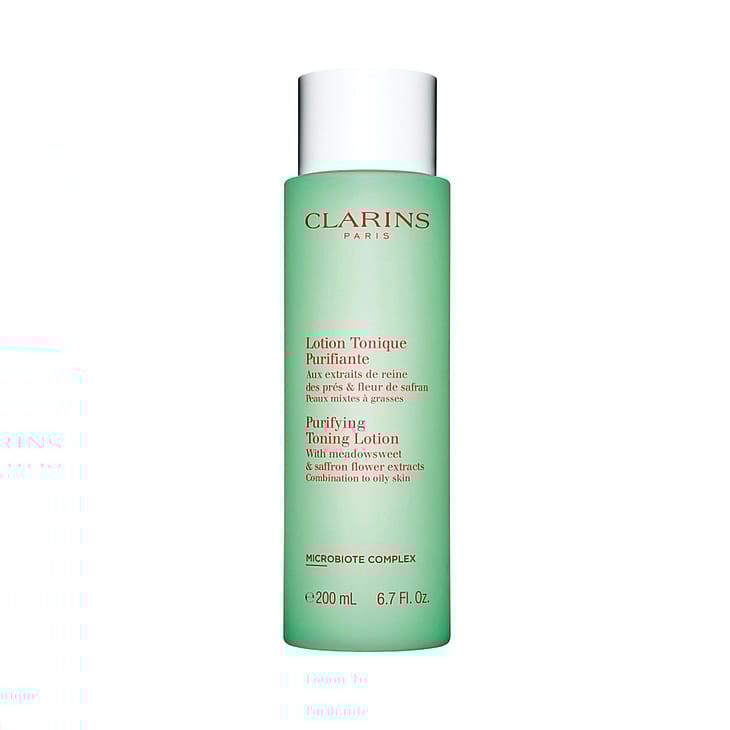 Purifying Toning Lotion -kasvovesi on erityisesti kehitetty seka- ja rasvoittuvalle iholle. Se poistaa meikin, puhdistaa, pienentää ihohuokosia ja auttaa säilyttämään ihon tasapainon. Runsaasti aktiiviainesosia sisältävä koostumus auttaa tasapainottamaan seka- ja rasvoittuvaa ihoa: mesiangervouute auttaa hillitsemään talintuotantoa, ja taikapähkinäuute antaa ihohuokosia supistavan vaikutuksen. Koostumuksen Clarins Microbiota Complex -yhdistelmä sisältää sahraminkukan polyfenoleita ja meripohjaista prebiomia, jotka auttavat säilyttämään ihon mikrobiomin tasapainon. Uusi design ja entistäkin ympäristöystävällisempi pullo.