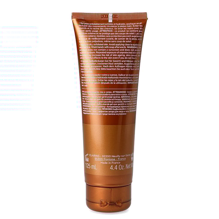 Nopeasti kuivuva itseruskettava geeli kasvoille ja vartalolle. Tekee ihosta hehkuvan ja päivettyneen. Ihosta tulee välittömästi säteilevä, ja tasainen ja intensiivinen päivetys ilmestyy nopeasti. Kevyesti sävytetty ja raikas koostumus on helppo levittää ja imeytyy nopeasti ihoon. Voit siis pukeutua heti käytön jälkeen, eikä tuote tahraa vaatteita. Raikas kukkaistuoksu. Koostumuksen itseruskettava yhdiste sisältää vain luonnollisia ainesosia (DHA ja erytruloosi), jotka yhdessä luovat iholle luonnollista, tasaista ja pitkäkestoista hehkua ja päivetystä. Glyseriini suojaa ihoa kuivumiselta. Ei tuki huokosia. ● Intensiivinen ja tasainen päivetys ● Nopeasti kuivuva ● Pitkäkestoinen