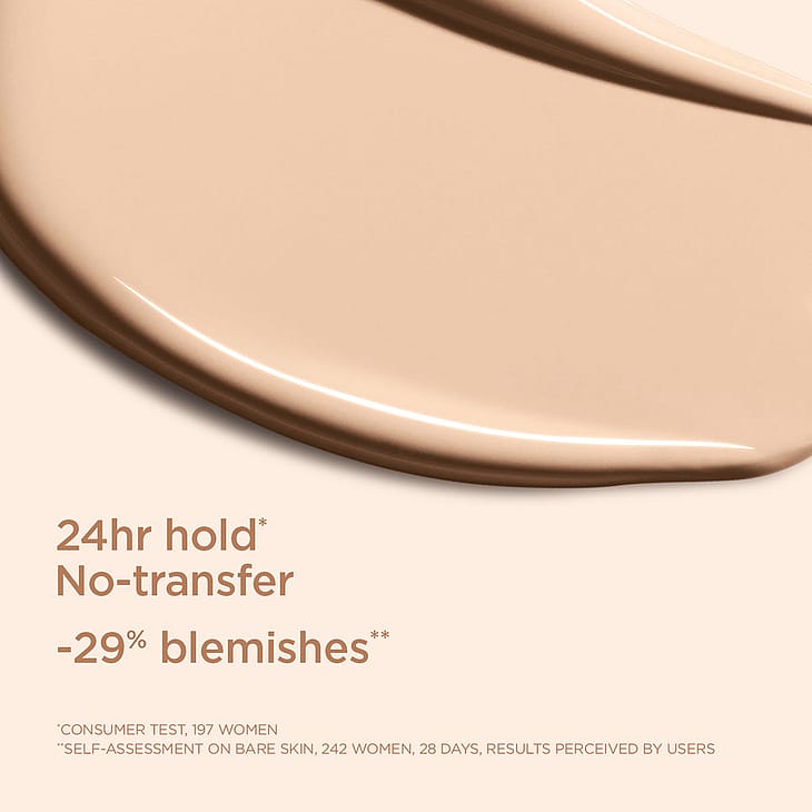Älä anna hikoilun, kosteuden, kyyneleiden tai naurun vaikuttaa ihosi sävyyn! Tämä korkean peittävyyden antava meikkivoide kestää 24 tuntia, ja innovatiivinen [Skin Fit Technology] -koostumus auttaa antamaan miellyttävän tunteen ja kestää kaikki tunneilmaisut. Heleä mattalopputulos auttaa vähentämään kiiltoa antaen täydellisen silkinpehmeän ihonsävyn aamusta iltaan. Tasoittaa ihoa ilman naamiomaista vaikutelmaa. Kevyt ja joustava koostumus tuntuu miellyttävältä ja antaa ihon hengittää. Skin Illusion Full Coverage yhdistää ylivoimaisen kestävyyden ja todistetut ihoa hoitavat ominaisuudet. Sinkkiglukonaattia sisältävä koostumus puhdistaa ihoa ja antaa mattaefektin. Lisäksi hyaluronihapon ja kasvipohjaisen Micropatch-ainesosan yhdistelmä antaa kosteuttavan vaikutuksen 24 tunniksi. Lopputulos: tasaisempi iho, mattainen mutta hehkuva lopputulos sekä näkyvästi vähemmän epätasaisuuksia. Ihosta tulee päivä päivältä kauniimpi, jopa ilman meikkiä.