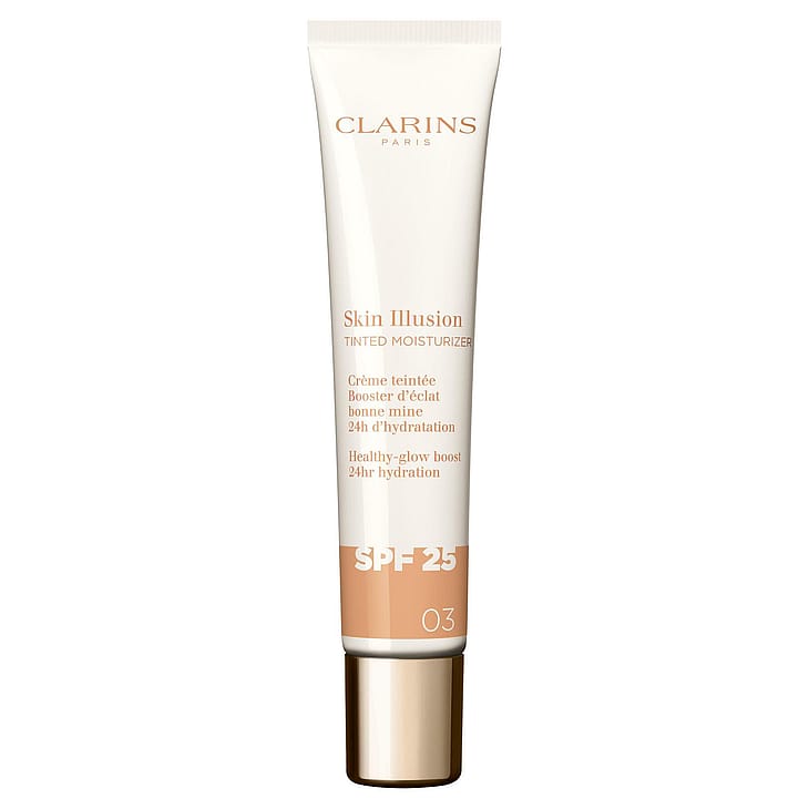 Skin Illusion Tinted Moisturizer on sävyttävä päivävoide, joka yhdistää ihonhoidon ja meikin antaen iholle luonnollisen heleän sävyn. Kevyt ja miellyttävä koostumus tasoittaa ihon sävyä ja antaa raikasta hehkua yhdessä vaiheessa. Hoitava koostumus sisältää yli 80 % ekologisia aktiiviainesosia, ja 94 % ihoa hoitavia ainesosia, kuten pienimolekyylistä hyaluronihappoa, joka kosteuttaa ihoa intensiivisesti ja antaa sille täyteläisen ulkonäön. Jo ensimmäisellä levityksellä ihohuokoset, juonteet ja rypyt näkyvät vähemmän, ja säännöllisesti käytettynä iho saa luonnollista hehkua – myös ilman meikkiä. Lisäksi Skin Illusion Tinted Moisturizer sisältää aurinkosuojan SPF25 sekä Clarins Anti-Pollution -yhdistelmän, jotka suojaavat ihoa ulkoisilta rasitustekijöiltä.