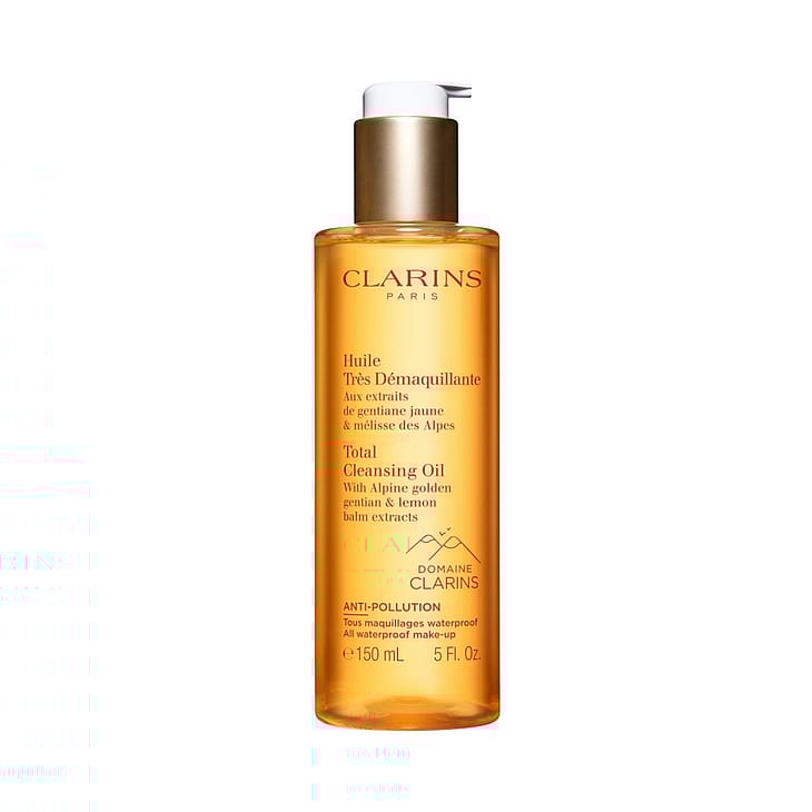 Total Cleansing Oil -puhdistusöljy poistaa erittäin kestävän meikin, mukaan lukien vedenkestävän, ja auttaa säilyttämään ihon tasapainon. Koostumuksen Clarins Gentle Complex -yhdistelmä sisältää ekologisia keltakatkero- ja sitruunamelissauutteita, jotka rauhoittavat ja pehmentävät ihoa. Koostumuksen kevyt ja pehmeä koostumus muuntuu vesikosketuksesta täyteläiseksi emulsioksi, ja käytön jälkeen iho tuntuu sileältä ja täydellisen puhtaalta. Uusi design ja entistäkin ympäristöystävällisempi pullo.