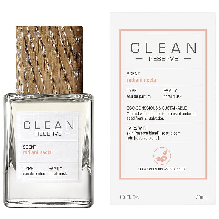 CLEAN RESERVE -kokoelma on luotu ajatellen ihmisiä ja planeettaa: tuoksut sisältävät muun muassa vastuullisia ainesosia, jotka hyödyttävät maanviljelijöitä ja heidän yhteisöjään. Radiant Nectar EdP sisältää vastuullisesti tuotettua, El Salvadorin maanviljelijöiden keräämää ambrettea. Yhteistyö tukee maanviljelijöitä ja heidän yhteisöjään sekä kehitysohjelmien että tasaisen tulonlähteen kautta."