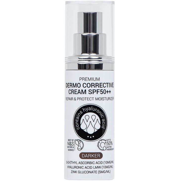 Dermo Corrective Cream sisältää ihon sävyyn mukautuvia pigmenttejä ja sopii meikinpohjustustuotteeksi, kevyesti peittäväksi meikkivoiteeksi, päivävoiteeksi ja SPF50 aurinkovoiteeksi. Voide kosteuttaa ja vahvistaa ihoa, sekä ehkäisee ennenaikaisia ikääntymisen merkkejä. Kevyt peittävyys piilottaa punoitusta, epäpuhtauksia, epätasaista ihon sävyä ja sameutta. Erinomainen tuote käytettäväksi esteettisten toimenpiteiden jälkeen. Sopii kaikille ihotyypeille. Kosteuttava UV-suojaIhanteellinen herkälle iholleIhon sävyyn mukautuvia, heleyttäviä pigmenttejä