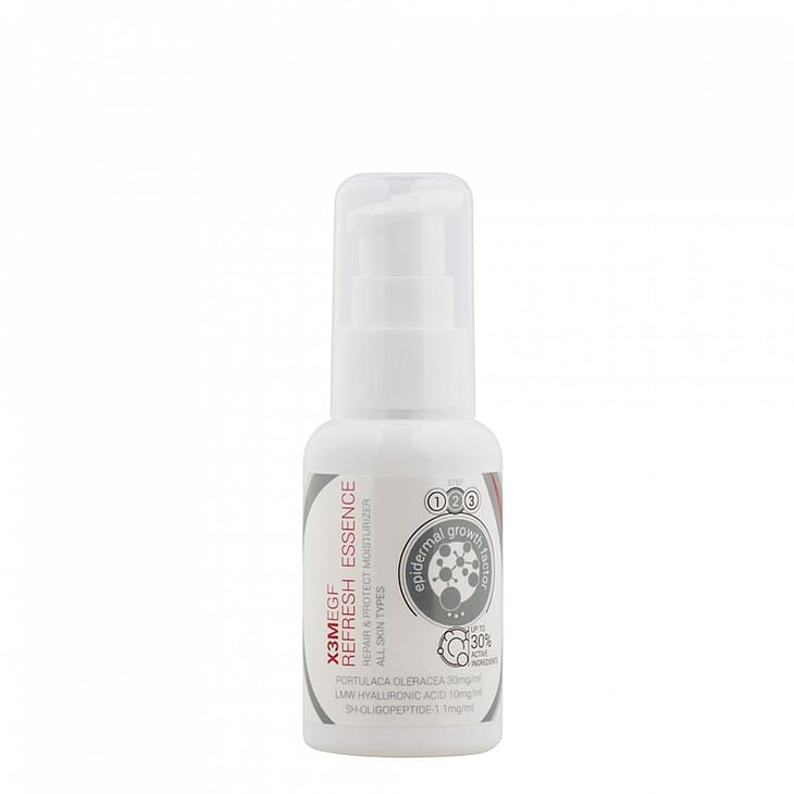 X3M EGF Refresh Essence vahvistaa ja rauhoittaa herkkää ihoa. Tämä seerumi syväkosteuttaa tehokkaasti erittäin tiivistetyllä, pienimolekyylisellä hyaluronihapolla. Tuotteeseen lisätyt antioksidantit energisoivat ja raikastavat ihoa, jättäen sen terveen hehkuvaksi. Antibakteeriset uutteet vähentävät ihoärsytystä ja rauhoittavat stressaantunutta ihoa jättäen miellyttävän tunteen. Tuotteen aktiiviset raaka-aineet stimuloivat kollageenituotantoa. Elvyttävä seerumi kasvoilleSyväkosteuttaa ihoaTuo iholle terveen hehkun