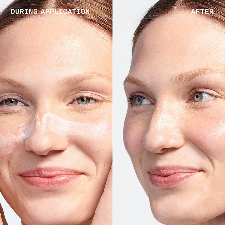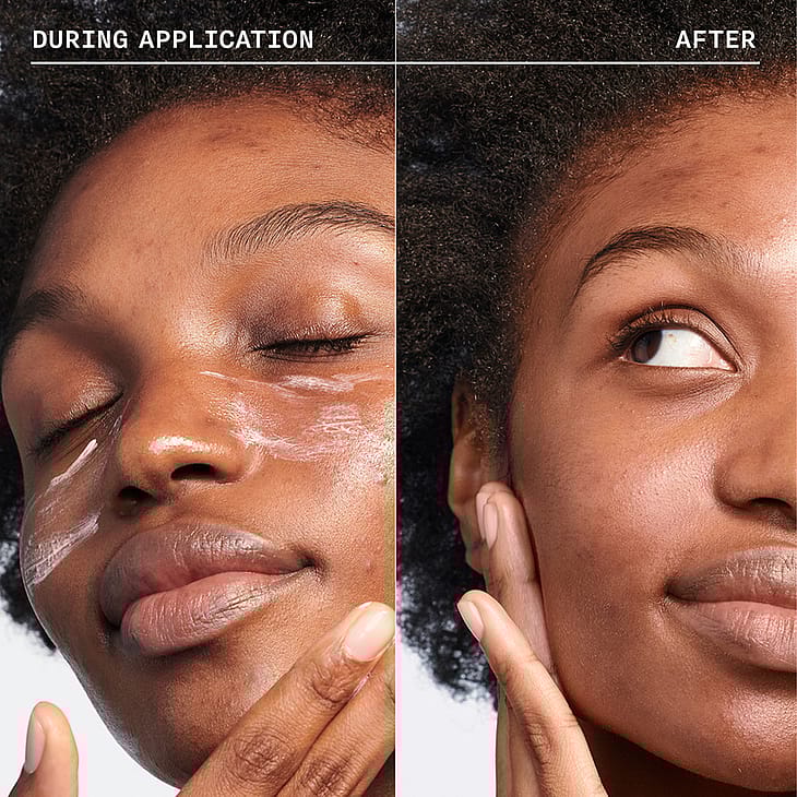• Taputtele tai hiero ulospäin koko kasvoille. Taputtele tai hiero, kunnes tuote on täysin läpikuultavaa.