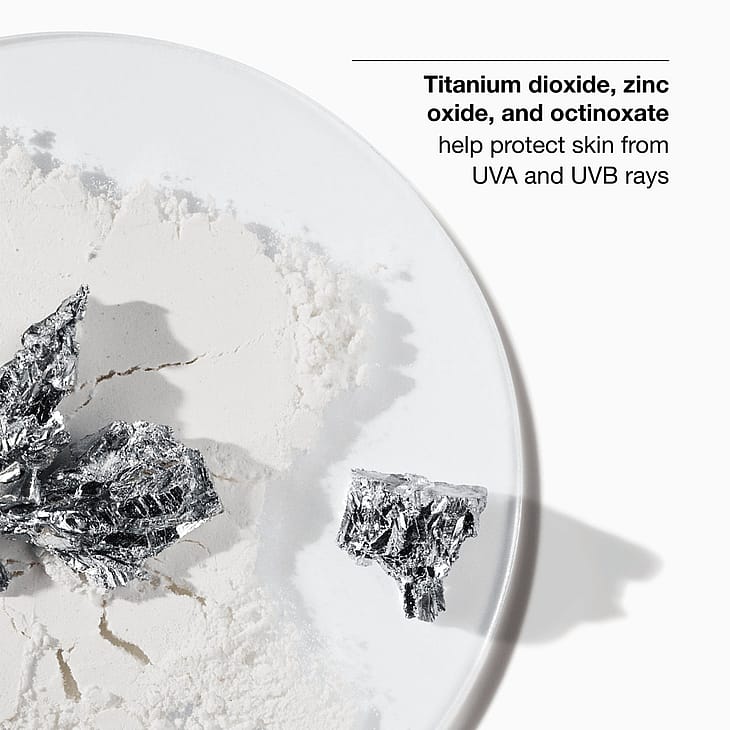 Active Ingredients: Octinoxate 5.0%, Titanium Dioxide 3.2%, Zinc Oxide 3.6%Ingredients: Water\Aqua\Eau, Dimethicone, Butyloctyl Salicylate, Isononyl Isononanoate, Neopentyl Glycol Diheptanoate, Lauryl Peg-9 Polydimethylsiloxyethyl Dimethicone, Butylene Glycol, Polydecene, Polyhydroxystearic Acid, Ethylhexyl Methoxycrylene, Hydrated Silica, Dimethicone/Vinyl Dimethicone Crosspolymer, Trimethylsiloxysilicate, Hydrolyzed Wheat Protein/Pvp Crosspolymer, Hydroxyapatite, Cetyl Peg/Ppg-10/1 Dimethicone, Dimethicone/Peg-10/15 Crosspolymer, Sodium Rna, Quaternium-90 Bentonite, Sodium Hyaluronate, Dimethicone Crosspolymer-3, Styrene/Acrylates Copolymer, Sodium Chloride, Caprylyl Glycol, Peg-8 Laurate, Propylene Carbonate, Silica, Tocopherol, Sodium Citrate, Disodium Edta, Bht, Phenoxyethanol, Potassium Sorbate, Iron Oxides (Ci 77491), Iron Oxides (Ci 77492) Observera att ingredienslistorna kan ändras eller variera från en tidpunkt till en annan. Se ingredienslistan på din produktförpackning för att få den mest uppdaterade ingredienslistan.