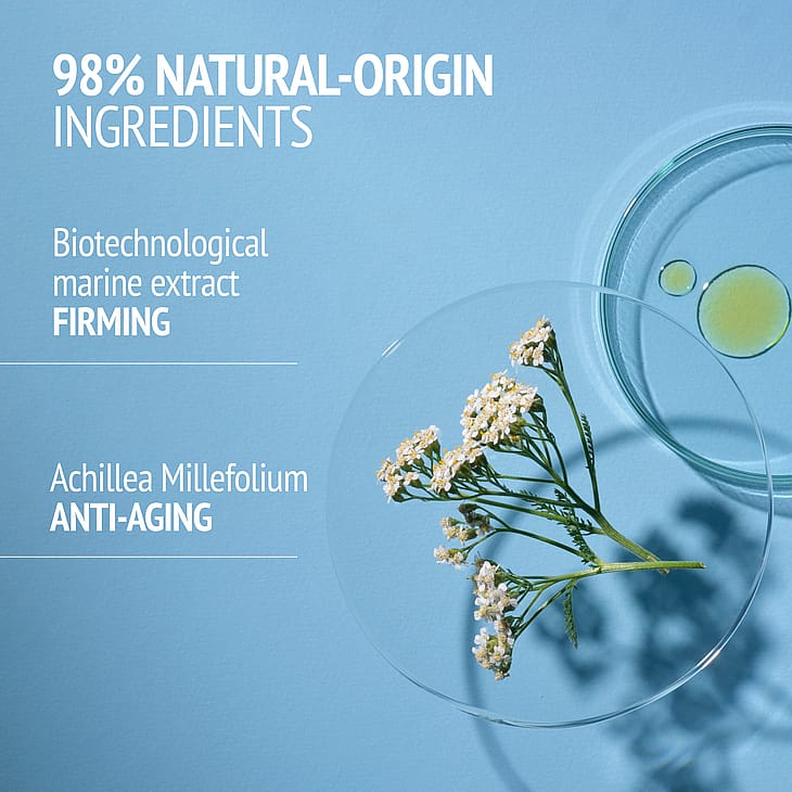Vaikuttavat ainesosat tehostavat kollageenin tuotantoa, vaikuttavat korjaavasti ihon luonnolliseen suojaan ja ehkäisevät äärimmäistä kuivuutta, ihon ohenemista ja kiinteyden menetystä. 98,8 % ainesosista on luonnollista alkuperää.