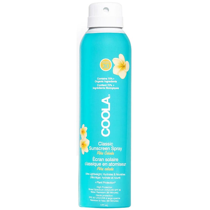 Classic SPF30 Body Spray Piña Colada on läpinäkyvä, vedenkestävä ja hienpitävä vartalosuihke, joka suojaa ihoa UV-säteilyltä samalla hoitaen ihoa. Tuote sisältää runsaasti antioksidantteja, jotka suojaavat ihoa vapailta radikaaleilta. Se on hellävarainen, kestävä ja helppokäyttöinen sekä sopii kaikille ihotyypeille. Tuotteessa on mieto piña coladan tuoksu. Aurinkosuojasuihke suojakertoimella SPF30. Vedenkestävä koostumus. Sisältää hoitavia ja suojaavia ainesosia.