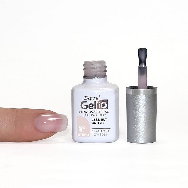 Uusi geelikoostumus, jonka ÄO on korkea. Nopeasti ja helposti levittyvä lakka, jolla saa superkiiltävän lopputuloksen ja jonka täyteläisyys erottaa sen tavallisista kynsilakoista. NO PREP tarkoittaa, että sinun ei tarvitse valmistella omaa kynttäsi viilaamalla tai käyttämällä vahvoja pohjustustuotteita, jotka voivat heikentää kyntesi laatua. Gel iQ tarvitsee vain kevyen puhdistuksen miedolla Pre-Cleanser -puhdistusaineella ennen lakkausta. Kunkin levitysvaiheen kovettamisaika on 30 sekuntia varta vasten kehitetyllä UV-/LED-valolla. Valon ja lakan yhteisvaikutuksesta mahdolliset raidat häviävät kovettumisen aikana, vaikka et olisi lakannut täysin tasaisesti. Kun päällyslakka on kovetettu valolla, kynsi puhdistetaan High Shine Cleanser -puhdistusaineella, joka saa esiin upean kiillon ja värintoiston. Lakka on tämän jälkeen kovetettu ja kuiva, sitä voi koskettaa ja se kestää kolhaisuja. Gel iQ -lakkaus on erittäin kestävä ja säilyy jopa 14 päivän ajan. Vegaaninen koostumus.