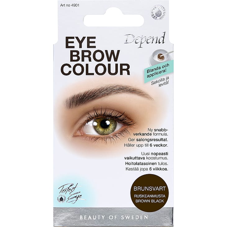 Depend Eyebrow Colour antaa kulmakarvoille intensiivisen värin, joka korostaa niiden muotoa. Uusi riisiproteiinia ja luhtalitukan öljyä sisältävä koostumus, joka lyhentää käsittelyaikaa ja antaa hoitolatasoisen tuloksen. Kulmakarvat värjäytyvät hellävaraisemmin, ja tulos on pysyvä ja vedenkestävä. Kestää jopa 6 viikkoa. Värivaihtoehdot ovat black, brown black, dark brown ja brown.