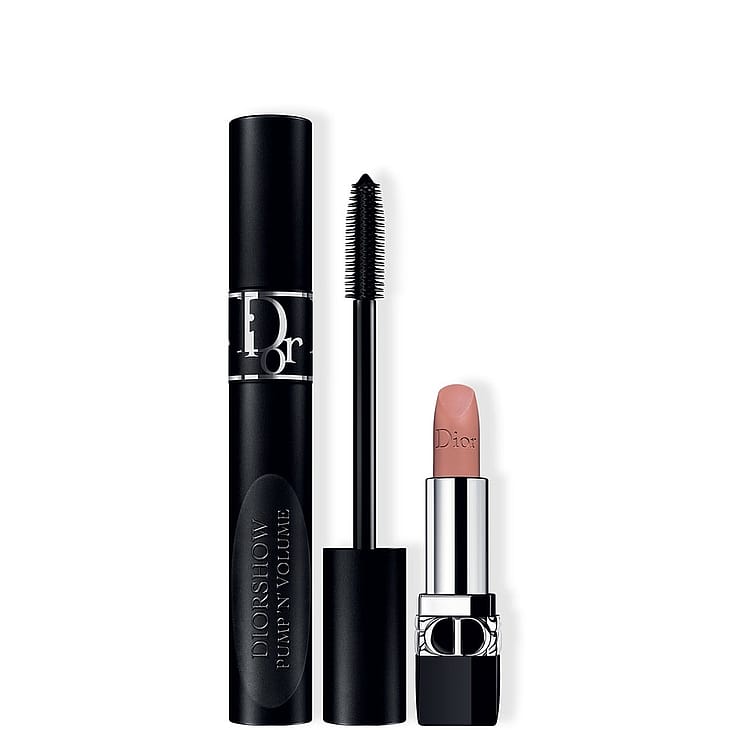 Dior-meikkisarja, jossa on Diorshow Pump 'N' Volume -ripsiväri ja Rouge Dior -minihuulipuna, jossa on erittäin mattapintainen samettiviimeistely
