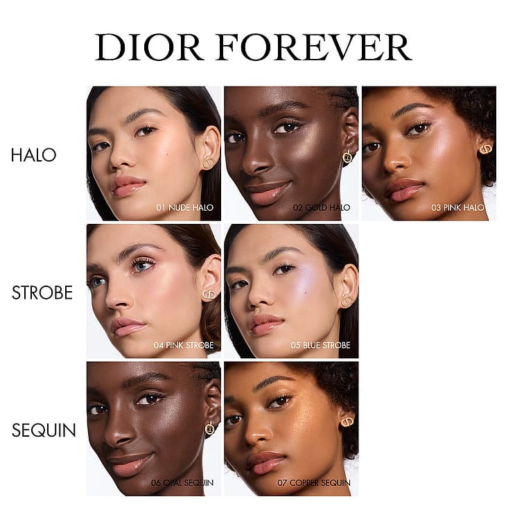 Dior Forever uudistaa korostuspuuterinsa, joka on nyt saatavana kolmena uutta viimeistelynä¹. Korostuspuuteri heijastaa valoa kaikista kulmista: Halo antaa kristallinhohtoa, Strobe² kaksiväristä hohdetta ja Sequin säihkyvää hehkua.