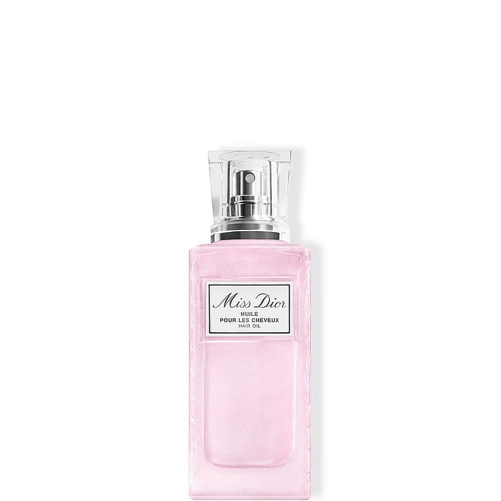 Miss Dior -hiustenhoitorutiinin ensimmäinen vaihe, eteeristä ruusuvahaa sisältävä Miss Dior -hiusöljy, kosteuttaa ja suojaa hiuksia. Sen kevyt ja hoitava koostumus tekee hiuksista pehmeät, joustavat ja kiiltävät ja jättää niille hienovaraisen Miss Dior Blooming Bouquet -kukkaistuoksun.