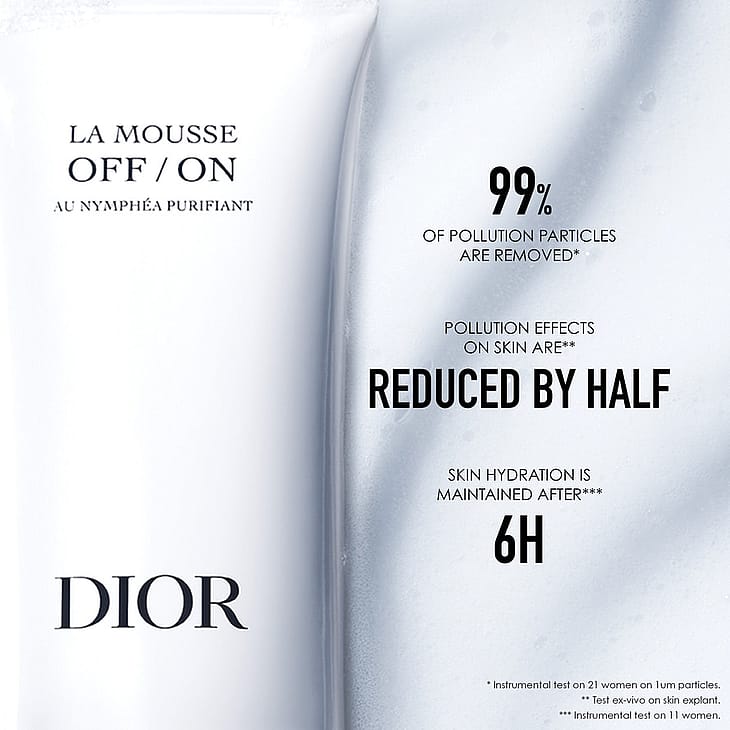 Dior on kehittänyt OFF/ON Foaming Cleanser -puhdistusvaahdon, joka sisältää 90 %* luonnollista alkuperää olevia ainesosia. Se puhdistaa ihon OFF/ON -tekniikalla: