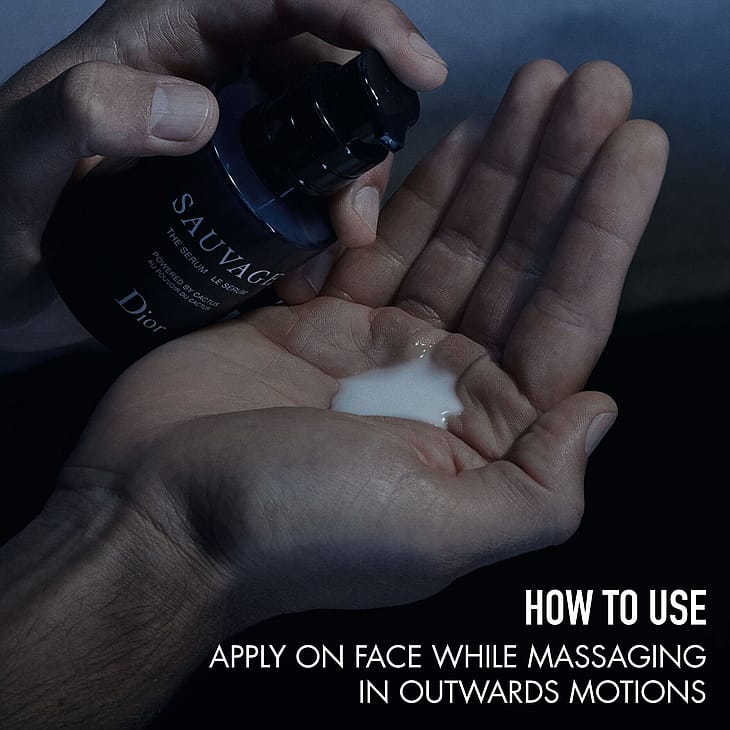 Sauvage The Serum -seerumille on ominaista miellyttävä koostumus, joka imeytyy helposti ihoon jättämättä rasvaista kalvoa tai jäämiä, myöskään partaan. 92 %*** Sauvage-tuoksua käyttävistä miehistä oli tyytyväisiä Sauvage The Serumiin.