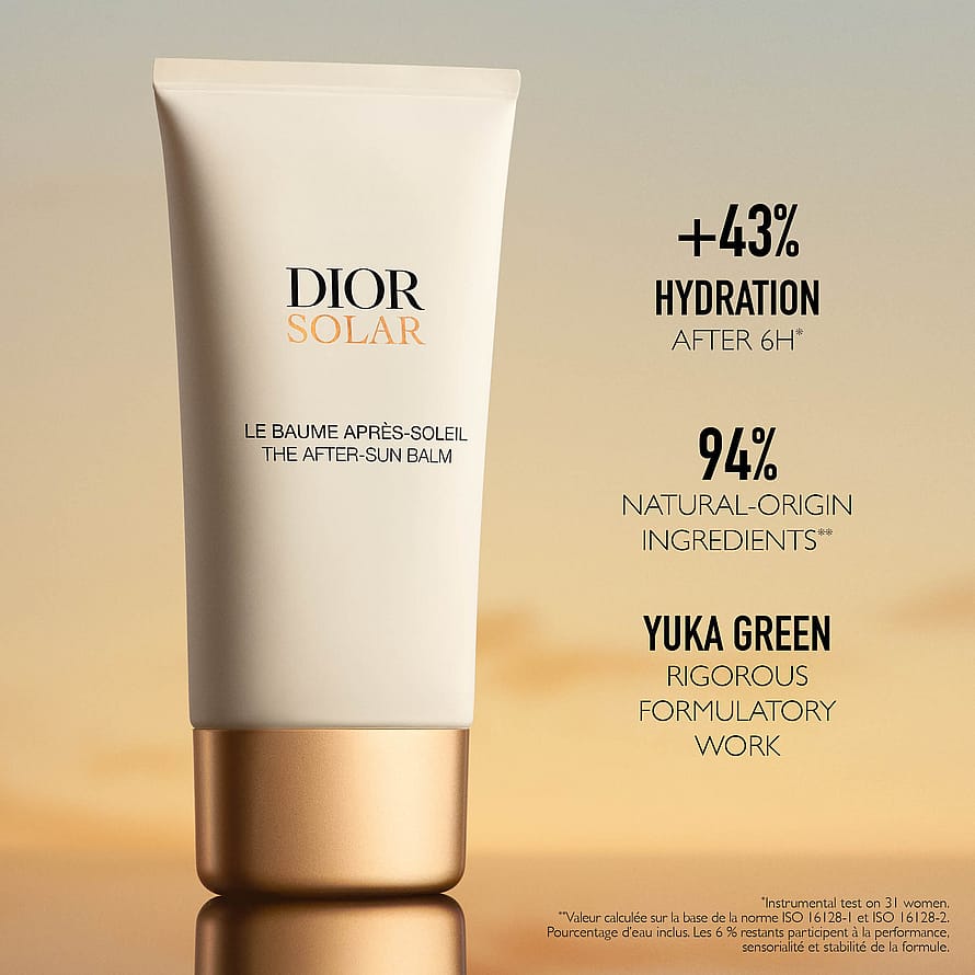 Dior Solar The After-Sun Balm on virkistävä kasvo- ja vartalovoide, jonka koostumus on kevyt ja sulaa iholle. 94 %* luonnollisista ainesosista koostuva voide rauhoittaa ja kosteuttaa ihoa tehokkaasti auringonoton jälkeen sekä säilyttää rusketuksen.