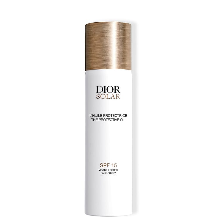 Dior Solar The Protective Face and Body Oil SPF 15 on aurinkosuojaöljy, joka levittyy helposti ja tasaisesti. Sen kevyt koostumus kaunistaa ihoa ja hiuksia ja antaa niille hohtavan pinnan.