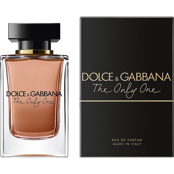 Dolce&Gabbana The Only One Eau de Parfum -tuoksun kallisarvoisella ja painavalla lasipullolla on graafinen muotoilu, joka lepää voimakkaalla suorakulmaisella pohjalla. Tuoksun persikkavivahde ilmentää naisen lämmintä hehkua, ja muotoilun viimeistelee kultainen rengasdetalji.