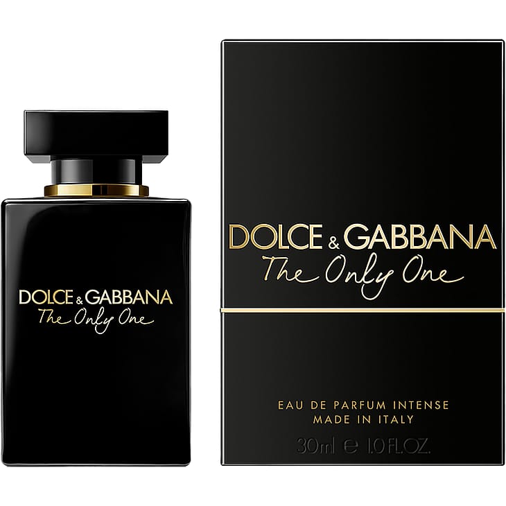 Dolce&Gabbana The Only One Eau de Parfum Intense -tuoksun mustansävyisellä pullolla on graafisia ja arkkitehtonisia piirteitä, jotka ilmentävät tuoksun hypnoottista intensiivisyyttä. Kultaiset yksityiskohdat vahvistavat vaikutelmaa.