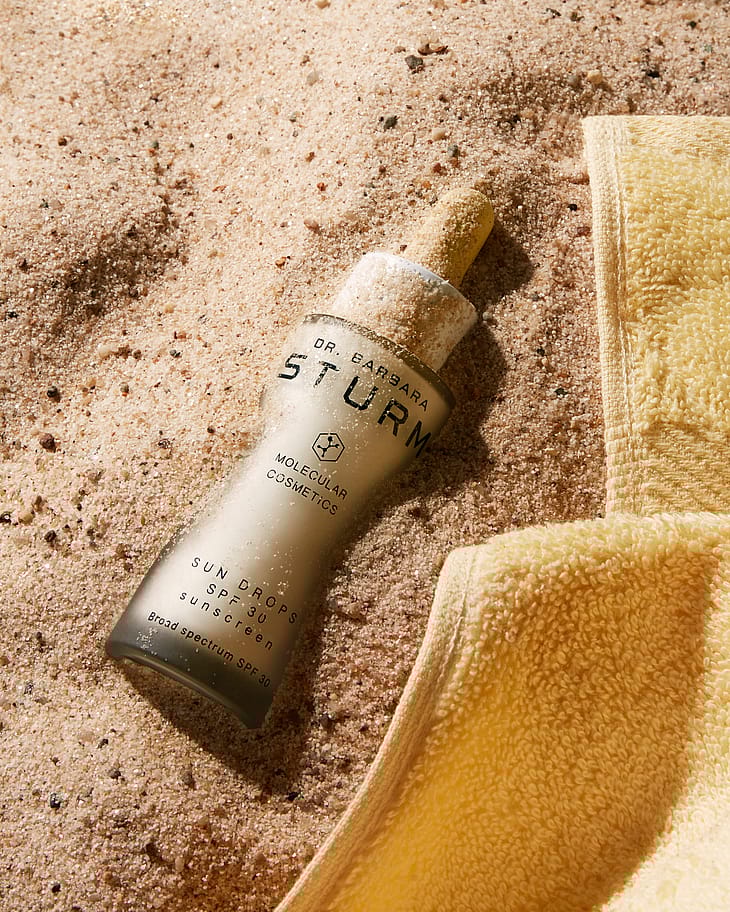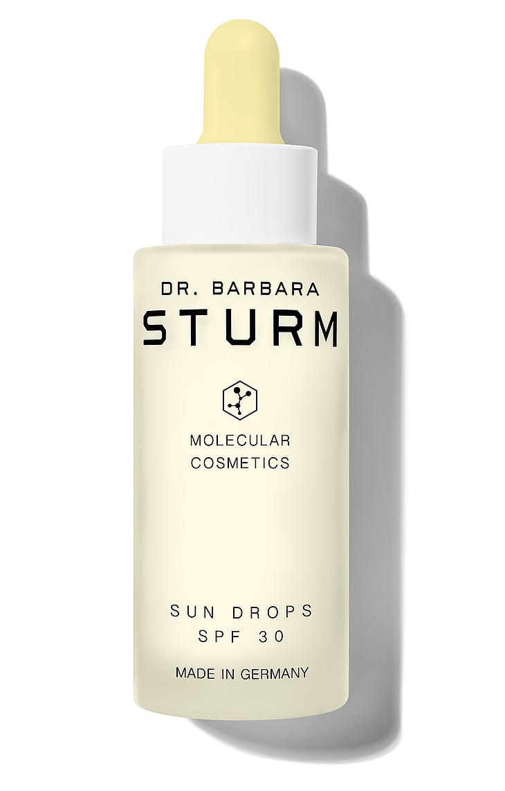 Dr. Sturm SUN DROPS SPF30 on auringolta suojaava ja ikääntymisen merkkejä torjuva hybridiseerumi, joka sisältää samoja tehokkaita molekyylitieteellisiä ainesosia kuin Dr. Sturmin ihonhoitotuotteet. Niiden innovatiivinen, ihoa kaunistava koostumus sisältää E-vitamiinia, beetaglukaania, hyaluronihappoa ja purslanea, jotka auttavat vahvistamaan ihon luonnollista puolustuskykyä, kosteuttavat tehokkaasti ja pitkäkestoisesti, antavat antioksidantteja ja rauhoittavat ärsytystä. SUN DROPS SPF30 sisältää laboratoriossa valmistettuja UVA- ja UVB-suodattimia. Toisin kuin mineraalisuodattimet, niiden kevyt ja silkkinen koostumus imeytyy helposti eikä iholle jää valkoisia jälkiä. Luo iholle terveen, luonnollisen STURMGLOW™ -hohteen.