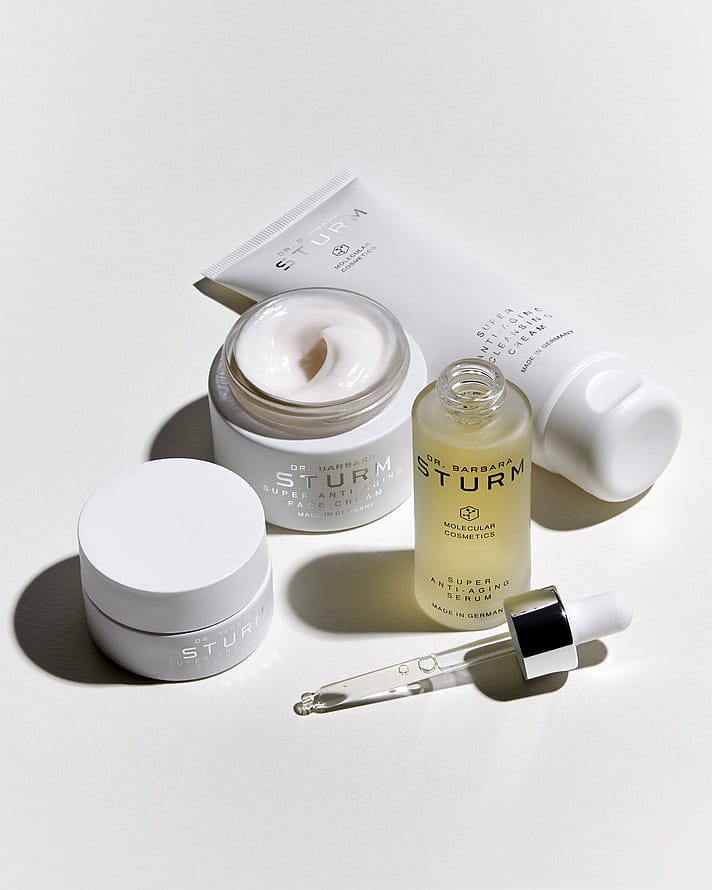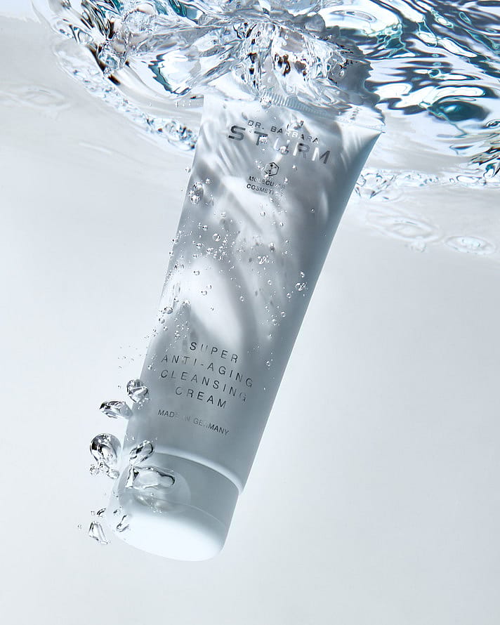 Dr. Sturmin puhdistusinnovaatio Super Anti-Aging Cleansing Cream on yksi tuotemerkin myydyimmän kokoelman, Super Anti-Aging Collectionin, tuotteista. Tuoksuton ja sulfaatiton koostumus sopii erinomaisesti aikuiselle ja kuivalle iholle tai kylmempiin sääolosuhteisiin. Täyteläinen puhdistusvoide poistaa hellävaraisesti epäpuhtaudet ja meikin jättämättä ihoa kuivaksi. Puhdistusvoide kosteuttaa ihoa intensiivisesti tehokkaiden ikääntymisen merkkejä ehkäisevien molekyylien avulla vielä senkin jälkeen, kun se on pesty pois. Voide jättää iholle fyysisen suojakerroksen, joka ehkäisee ympäristön epäpuhtauksien aiheuttamia oksidatiivisia vaurioita. Parantaa kosteustasoja ja ravitsee ihoa. Poistaa kaiken meikin ja suojaa samalla ihon herkkää pH-arvoa. Auttaa palauttamaan ihon suojakerroksen.