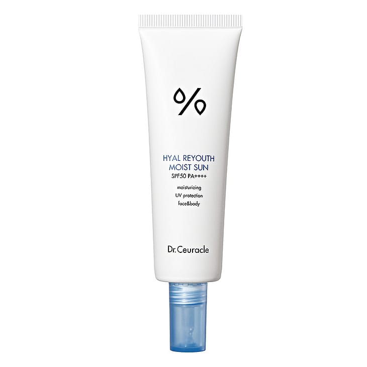 Hyal Reyouth Moist Sun on kosteuttava, kevyt voide päivittäiseen käyttöön. Sisältää kemiallisen uv-suojan, SPF50+ PA++++. 10 erilaista hyaluronihappotyyppiä syväkosteuttavat ihoa ja vahvistavat ihon suojakerrosta. Suurimolekyyliset hyaluronihappotyypit muodostavat iholle kosteussuojan, joka ehkäisee kosteuden haihtumista. ja pienemmät molekyylit auttavat vahvistamaan kosteussuojaa. Pienimolekyylinen hyaluronihappotyyppi puolestaan imeytyy syvälle ihoon, kosteuttaa pitkäkestoisesti ja parantaa ihon kimmoisuutta. Pantenoli (B5-vitamiini) ja fruktaanit toimivat yhdessä hyaluronihapon kanssa kosteuttaen ja kiinteyttäen ihoa. Virkistävä koostumus muistuttaa hoitonestettä ja imeytyy nopeasti jättämättä iholle paksua tai valkoista kerrosta. Kevyt ja kosteuttava uv-suoja. Ehkäisee ikääntymisen merkkejä ja kirkastaa ihoa. Kemiallinen uv-suoja, SPF50+ PA++++.