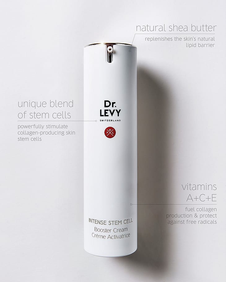 Booster Cream on kevyt ja nopeasti imeytyvä 24h-voide, joka imeytyy syvälle ihoon ja lukitsee kosteuden. Sisältää Dr. Levyn patentoitua kantasoluyhdistettä, joka stimuloi kollageenin muodostusta, mikä vähentää ja ehkäisee juonteita ja samalla kiinteyttää ihoa. Koostumus siältää lisäksi sheavoita, skvalaania ja hyaluronihappoja, jotka yhdessä parantavat ihon rakennetta, kun taas niasiiniamidi, vitamiinit ja peptidit jättävät ihon hehkuvaksi ja pehmeäksi. Tasoittava 24h-voide. Kiinteyttää ja lisää ihon täyteläisyyttä. Sisältää Dr. Levyn patentoitua kantasoluyhdistettä.