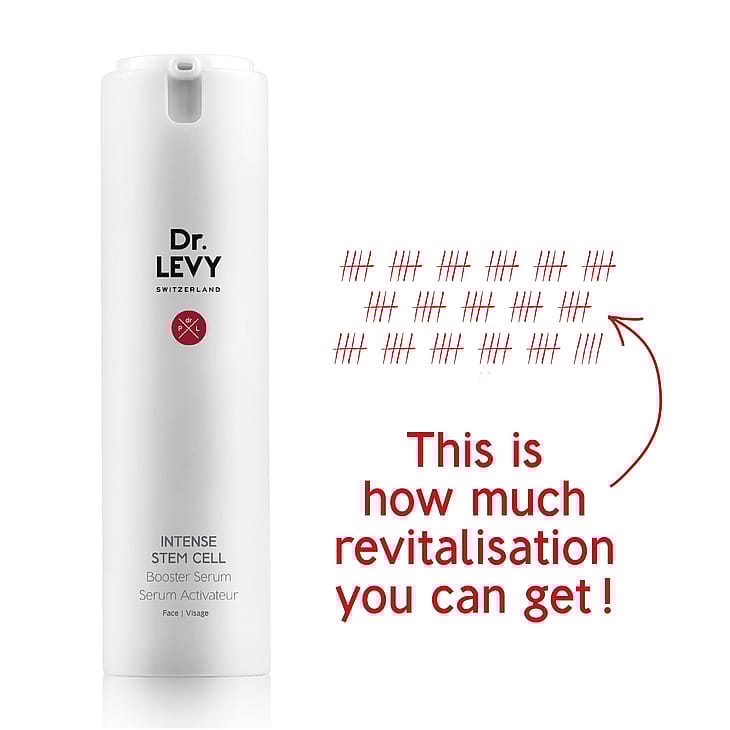 Dr. Levyn sankarin Booster Serum, jota L'Officiel kutsuu Aikakoneeksi, seisoo etulinjassa tuotevalikoimassamme. Kyllästetty Dr. Levyn patentoituneella ArganCDV™:llä, hänen yksinomaisella dermaalisten kantasolujen supervoimallaan, tämä eliksiiri mullistaa ihonhoitoalan.