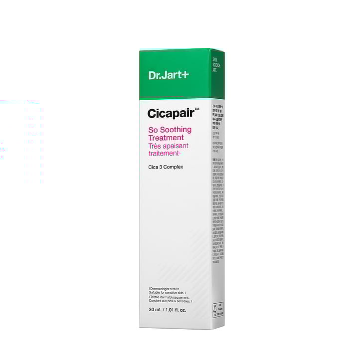 Dr.Jart+ Cicapair So Soothing Treatment on tehokas geeli, joka tarjoaa keskittynyttä hoitoa silloin, kun iho sitä eniten tarvitsee. Sopii herkälle iholle ja käytettäväksi laserihoidon tai happokuorinnan jälkeen*. Se sisältää useita Centella Asiatica Extracts -uutteita (Cica 3 Complex) intensiiviseen rauhoittamiseen, sekä Fensibiome Peptideä ja Alpaflor™ Scutellaria CB:tä suojaavan kerroksen korjaamiseen. Kevyt geelimäinen koostumus kosteuttaa, silottaa ja levittyy helposti iholle hellävaraisesti. Käytä sitä alueisiin, joilla on näkyvää ärsytystä, tai koko kasvoille. Ei tahmea, ei rasvainen koostumus jättää puhtaan viimeistelyn, joka sopii meikin alle.
