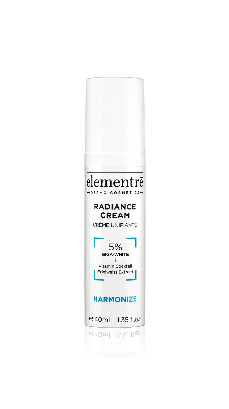 Radiance Cream -voiteen ainutlaatuinen koostumus sisältää 7 sveitsiläistä kasviuutetta, jotka auttavat vähentämään hyperpigmentaatiota. Ainutlaatuinen koostumus kuorii ihoa varovasti ja tehoaa useissa vaiheissa ihon pigmentaatioprosessiin. Vitamiiniyhdistelmä yhdessä Edelweiss-antioksidantin kanssa stimuloi solujen uudistumista ja parantaa ihon kiinteyttä. Iho näyttää kirkkaammalta ja hehkuvammalta ja siinä on tasaisempi ihonsävy. Kuoriva voide, joka tasoittaa ihonsävyä. Sopii herkälle iholle. Lisää ihon hehkua ja kirkastaa ihonsävyä.