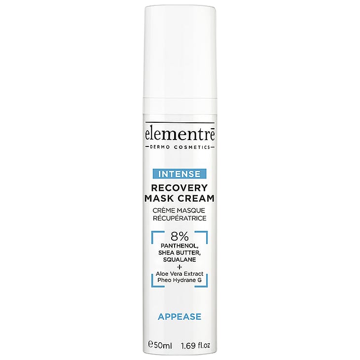 Recovery Mask Cream hemmottelee ihoa tehokkaasti kosteuttavalla ja rauhoittavalla vaikutuksella ja korkealla pantenolipitoisuudella. Sheavoi ja skvalaani yhdessä Pheo Hydrane G -ainesosan kanssa vahvistavat ihon vastustuskykyä ja suojakerrosta sekä ehkäisevät ihon kuivuutta ja stimuloivat kollageenin tuotantoa. Tuotteen sisältämä aloe vera rauhoittaa välittöm ästi ja sillä on tulehdusta ehkäisevä vaikutus. Vahvistava kasvonaamio, joka tarjoaa välitöntä helpotusta hoidon jälkeen jättämättä jälkeensä raskasta tai täyteläistä tunnetta iholle. Hajusteeton. Rauhoittava ja kosteuttava kasvonaamio. Rauhoittaa ihoa välittömästi. Kasvonaamio, jossa on kevyt koostumus.