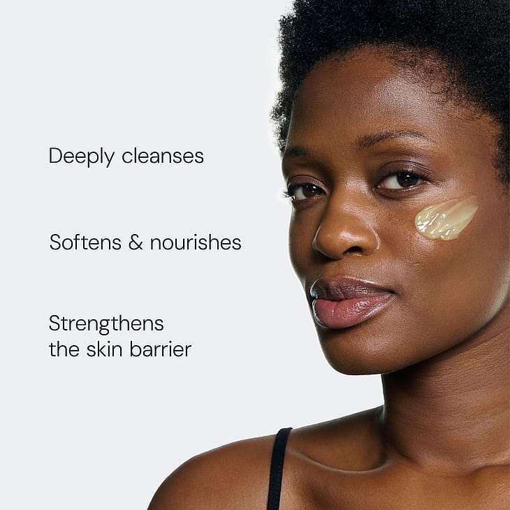 Matka kolmen hemmottelevan tekstuurin läpi yhdessä. Täyteläinen balsami sulaa ylelliseksi öljyksi hellävaraisesti ihoon hierottaessa, ennen kuin muuttuu kosteuttavaksi maidoksi joutuessaan kosketuksiin veden kanssa. Ainutlaatuinen koostumus poistaa vaivattomasti pitkäkestoisen meikin, päivittäisen lian ja pinnan epäpuhtaudet sekä syväpuhdistaa ja pehmentää kasvonaamiona.