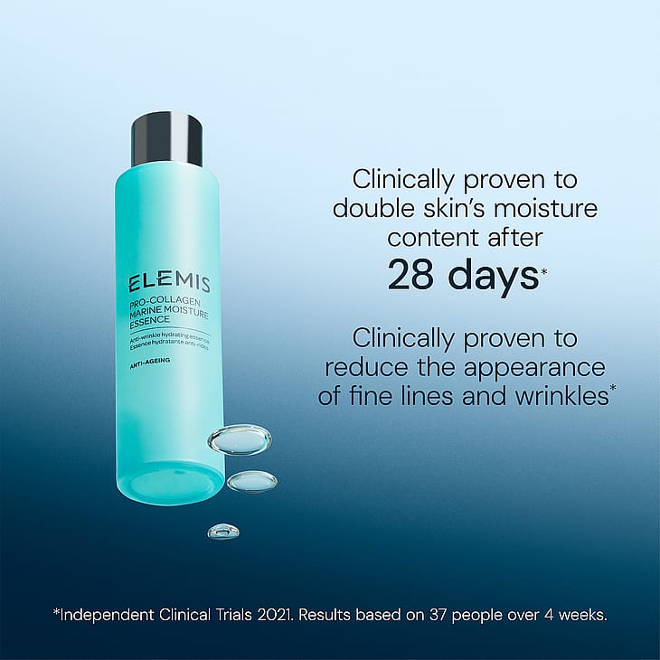 Pro-Collagen Marine Moisture Essence on hoitoneste, joka nostaa ihon kosteustasoa ja virkistää. Tuote sisältää hyaluronihappoa sekä yhdistelmän kosteuttavaa Padina Pavonica -levää ja lähdevettä, joka sisältää korkean pitoisuuden magnesiumia, kuparia ja sinkkiä. Se syväkosteuttaa ihoa välittömästi ja vaikutus kestää jopa 24 tuntia. Koostumus auttaa vähentämään juonteita, ja valmistelee ihon seuraavaksi levitettäville tuotteille parantaen niiden imeytyvyyttä. Kosteuttava ja virkistävä hoitoneste. Vähentää juonteita ja valmistelee ihon seuraaville tuotteille. Nostaa ihon kosteustasoa, jonka vaikutus kestää jopa 24 tuntia.