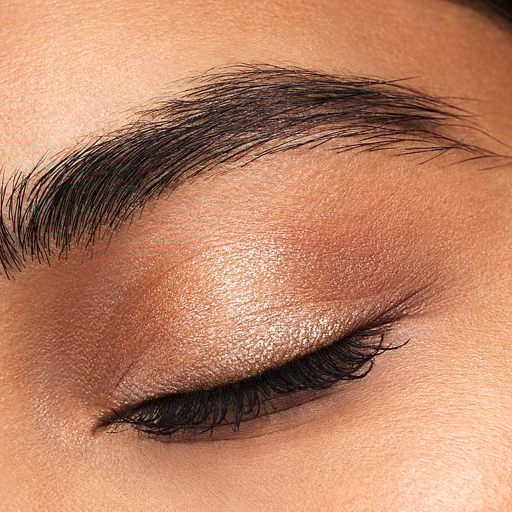 • Levitä luomivärin päälle puhtaalla sormella korostamaan ja tuomaan lisää ulottuvuutta tai painele paljaille luomille ohueksi säihkekerrokseksi.