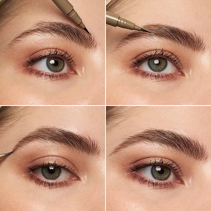"Erittäin ohut nestemäinen kulmakynä, jossa on kevyt, kerrostettavissa oleva pigmentti, täydellinen ohuiden, hiusmaisten viivojen luomiseen luonnollisen kulmalookin aikaansaamiseksi, joka kestää koko päivän.