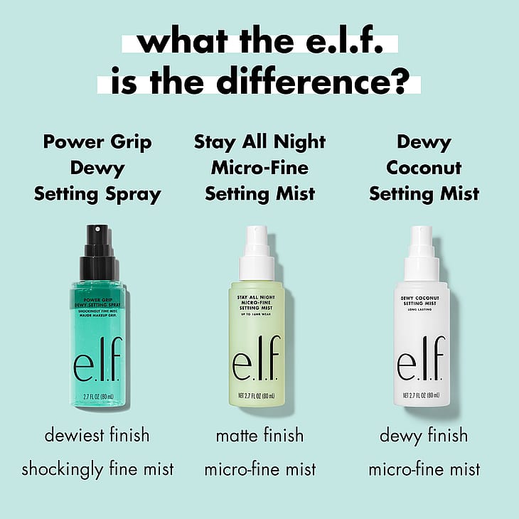 Muuta tapaa, jolla kiinnität meikin! Tee meikistä pitävä ja nauti heleästä lopputuloksesta e.l.f.:n Cosmetics Powder Grip Dewy Setting Spraylla. Hämmästyttävän hienojakoinen kaksivaiheinen koostumus sisältää vesipohjaisen ja öljypohjaisen vaiheen, ja siinä on 5 % aloe veraa sekä hyaluronihappoa, skvalaania ja vihreän teen siemenöljyä. Ravista aktivoidaksesi molemmat vaiheet ja saat heleän, pitkäkestoisen meikin.