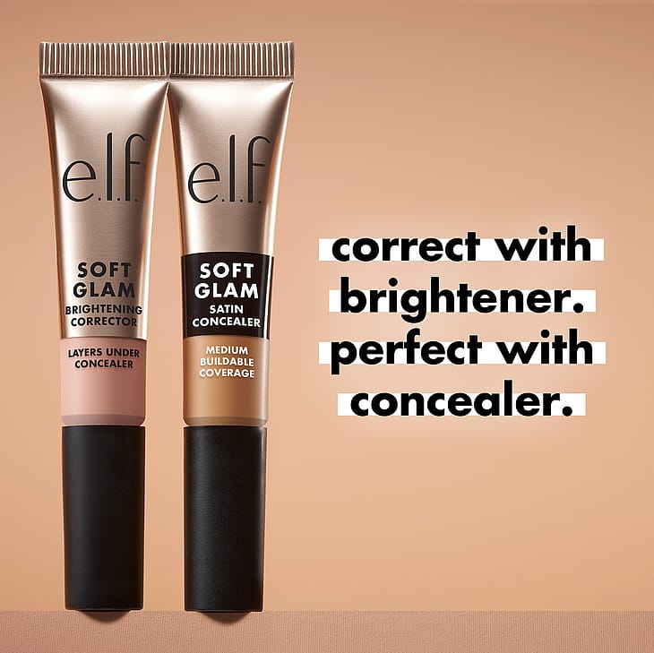 Siirry hehkutilaan e.l.f. Cosmetics Soft Glam Brightening Concealer -peiteaineella. Kevyt ja pitkäkestoinen, kermainen värinkorjaaja levittyy kauniisti Soft Glam Satin Concealer -peiteaineen alle, auttaen häivyttämään tummia silmänalusia, kirkastamaan ihon sävyeroja ja tasoittamaan ihonsävyä.