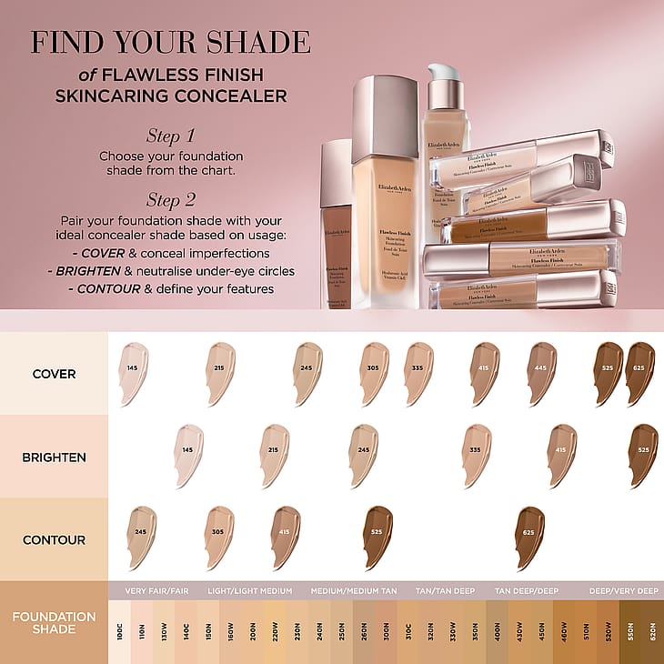 Elizabeth Arden Flawless Finish Skincaring Concealer on kevyesti peittävä concealer, joka peittää katkenneet verisuonet ja tummat silmänympärykset ja tuo heleyttä kasvoille. Sisältää 88% hoitavia ainesosia. Sisältää hyaluronihappoa sekä E- ja C-vitamiinia. Hoitaa ihoa sekä antaa kevyen ja luonnollisen peittävyyden jopa 16 tunniksi, joten Flawles Finish Skincaring Concealer sopii hyvin myös kuivalle ja herkälle iholle.