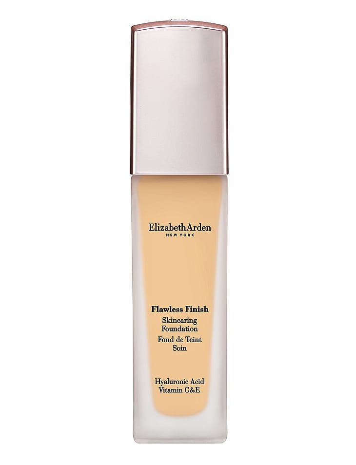 Elizabeth Arden Flawless Finish Skincaring Foundation on nestemäinen meikkivoide, joka kestää pitkään ja tekee ihosta luonnollisen näköisen. Peittävyyttä voi lisätä asteittain. Kevyt koostumus kestää jopa 24 tuntia. Hoitavat ainesosat helpottavat ihonhoitorutiineja. Saa ihon näyttämään ja tuntumaan ainutkertaisen virheettömältä. Keskipeittävä lopputulos, jota voi lisätä asteittain. Flawless Finish Skincaring Foundation on ihoa hoitava meikkivoide, joka sisältää hyaluronihappoa, C- ja E-vitamiinia ja hillitsee ihon kiiltoa jopa 24 tunnin ajan myös lämpimässä ja kosteassa ilmassa. Ei kerry huokosiin tai juonteisiin. Ei tuki ihohuokosia. Dermatologisesti testattu. Saatavana 25 valikoitua lämmintä, neutraalia ja kylmää sävyä. Värikoodin perässä oleva kirjain kertoo, onko kyseessä lämmin (W), neutraali (N) vai kylmä (C) sävy. Tyylikäs ja käytännöllinen pumppupullo.