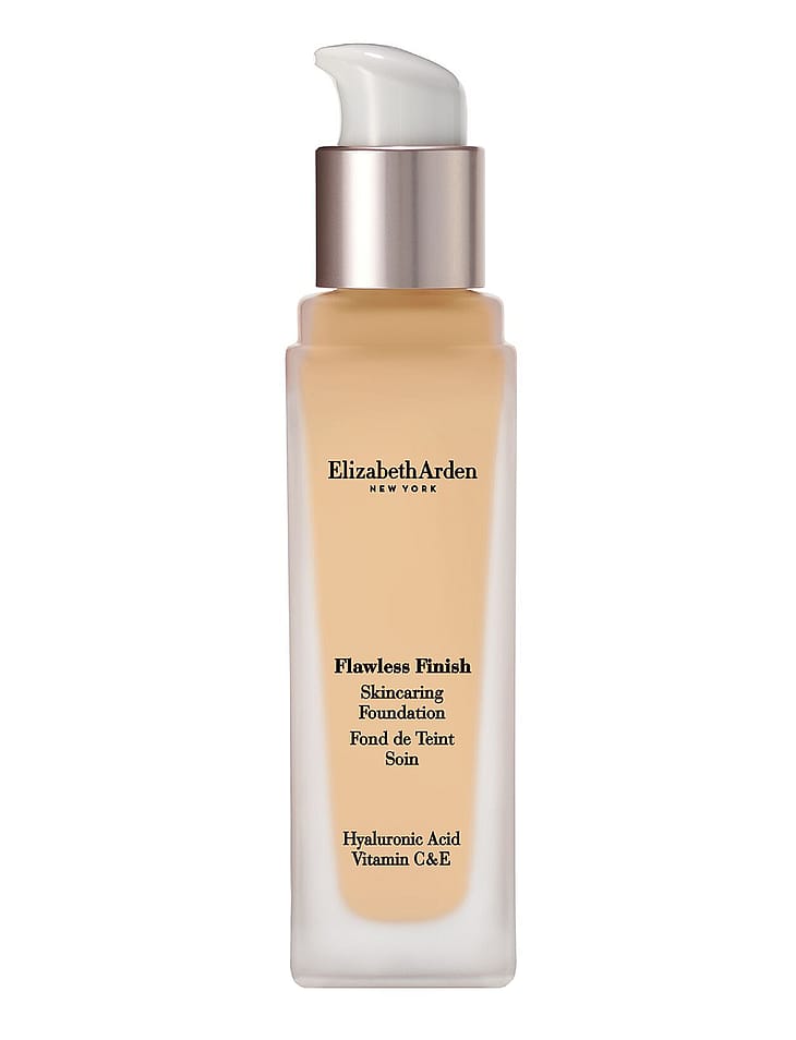Elizabeth Arden Flawless Finish Skincaring Foundation on nestemäinen meikkivoide, joka kestää pitkään ja tekee ihosta luonnollisen näköisen. Peittävyyttä voi lisätä asteittain. Kevyt koostumus kestää jopa 24 tuntia. Hoitavat ainesosat helpottavat ihonhoitorutiineja. Saa ihon näyttämään ja tuntumaan ainutkertaisen virheettömältä. Keskipeittävä lopputulos, jota voi lisätä asteittain. Flawless Finish Skincaring Foundation on ihoa hoitava meikkivoide, joka sisältää hyaluronihappoa, C- ja E-vitamiinia ja hillitsee ihon kiiltoa jopa 24 tunnin ajan myös lämpimässä ja kosteassa ilmassa. Ei kerry huokosiin tai juonteisiin. Ei tuki ihohuokosia. Dermatologisesti testattu. Saatavana 25 valikoitua lämmintä, neutraalia ja kylmää sävyä. Värikoodin perässä oleva kirjain kertoo, onko kyseessä lämmin (W), neutraali (N) vai kylmä (C) sävy. Tyylikäs ja käytännöllinen pumppupullo.