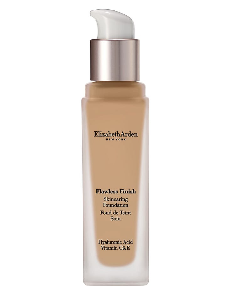 Elizabeth Arden Flawless Finish Skincaring Foundation on nestemäinen meikkivoide, joka kestää pitkään ja tekee ihosta luonnollisen näköisen. Peittävyyttä voi lisätä asteittain. Kevyt koostumus kestää jopa 24 tuntia. Hoitavat ainesosat helpottavat ihonhoitorutiineja. Saa ihon näyttämään ja tuntumaan ainutkertaisen virheettömältä. Keskipeittävä lopputulos, jota voi lisätä asteittain. Flawless Finish Skincaring Foundation on ihoa hoitava meikkivoide, joka sisältää hyaluronihappoa, C- ja E-vitamiinia ja hillitsee ihon kiiltoa jopa 24 tunnin ajan myös lämpimässä ja kosteassa ilmassa. Ei kerry huokosiin tai juonteisiin. Ei tuki ihohuokosia. Dermatologisesti testattu. Saatavana 25 valikoitua lämmintä, neutraalia ja kylmää sävyä. Värikoodin perässä oleva kirjain kertoo, onko kyseessä lämmin (W), neutraali (N) vai kylmä (C) sävy. Tyylikäs ja käytännöllinen pumppupullo.