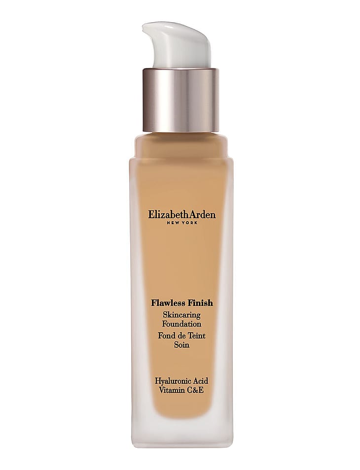 Elizabeth Arden Flawless Finish Skincaring Foundation on nestemäinen meikkivoide, joka kestää pitkään ja tekee ihosta luonnollisen näköisen. Peittävyyttä voi lisätä asteittain. Kevyt koostumus kestää jopa 24 tuntia. Hoitavat ainesosat helpottavat ihonhoitorutiineja. Saa ihon näyttämään ja tuntumaan ainutkertaisen virheettömältä. Keskipeittävä lopputulos, jota voi lisätä asteittain. Flawless Finish Skincaring Foundation on ihoa hoitava meikkivoide, joka sisältää hyaluronihappoa, C- ja E-vitamiinia ja hillitsee ihon kiiltoa jopa 24 tunnin ajan myös lämpimässä ja kosteassa ilmassa. Ei kerry huokosiin tai juonteisiin. Ei tuki ihohuokosia. Dermatologisesti testattu. Saatavana 25 valikoitua lämmintä, neutraalia ja kylmää sävyä. Värikoodin perässä oleva kirjain kertoo, onko kyseessä lämmin (W), neutraali (N) vai kylmä (C) sävy. Tyylikäs ja käytännöllinen pumppupullo.