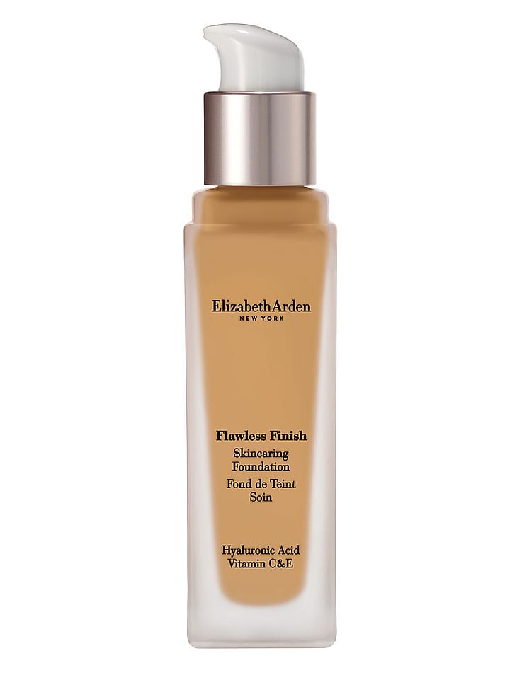Elizabeth Arden Flawless Finish Skincaring Foundation on nestemäinen meikkivoide, joka kestää pitkään ja tekee ihosta luonnollisen näköisen. Peittävyyttä voi lisätä asteittain. Kevyt koostumus kestää jopa 24 tuntia. Hoitavat ainesosat helpottavat ihonhoitorutiineja. Saa ihon näyttämään ja tuntumaan ainutkertaisen virheettömältä. Keskipeittävä lopputulos, jota voi lisätä asteittain. Flawless Finish Skincaring Foundation on ihoa hoitava meikkivoide, joka sisältää hyaluronihappoa, C- ja E-vitamiinia ja hillitsee ihon kiiltoa jopa 24 tunnin ajan myös lämpimässä ja kosteassa ilmassa. Ei kerry huokosiin tai juonteisiin. Ei tuki ihohuokosia. Dermatologisesti testattu. Saatavana 25 valikoitua lämmintä, neutraalia ja kylmää sävyä. Värikoodin perässä oleva kirjain kertoo, onko kyseessä lämmin (W), neutraali (N) vai kylmä (C) sävy. Tyylikäs ja käytännöllinen pumppupullo.