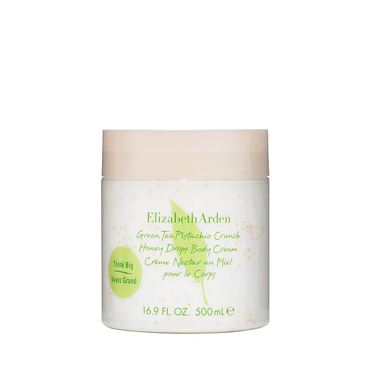 Koe poikkeuksellinen aistimellinen matka Elizabeth Ardenin uuden Green Tea Pistachio Crunch Honey Drops -vartalovoiteen kanssa. Ihastuttava gourmand-sekoitus, jossa helmeilevät sitrushedelmät ja pehmeät kukkaistutukset kohtaavat lämpimässä, makeassa syleilyssä.