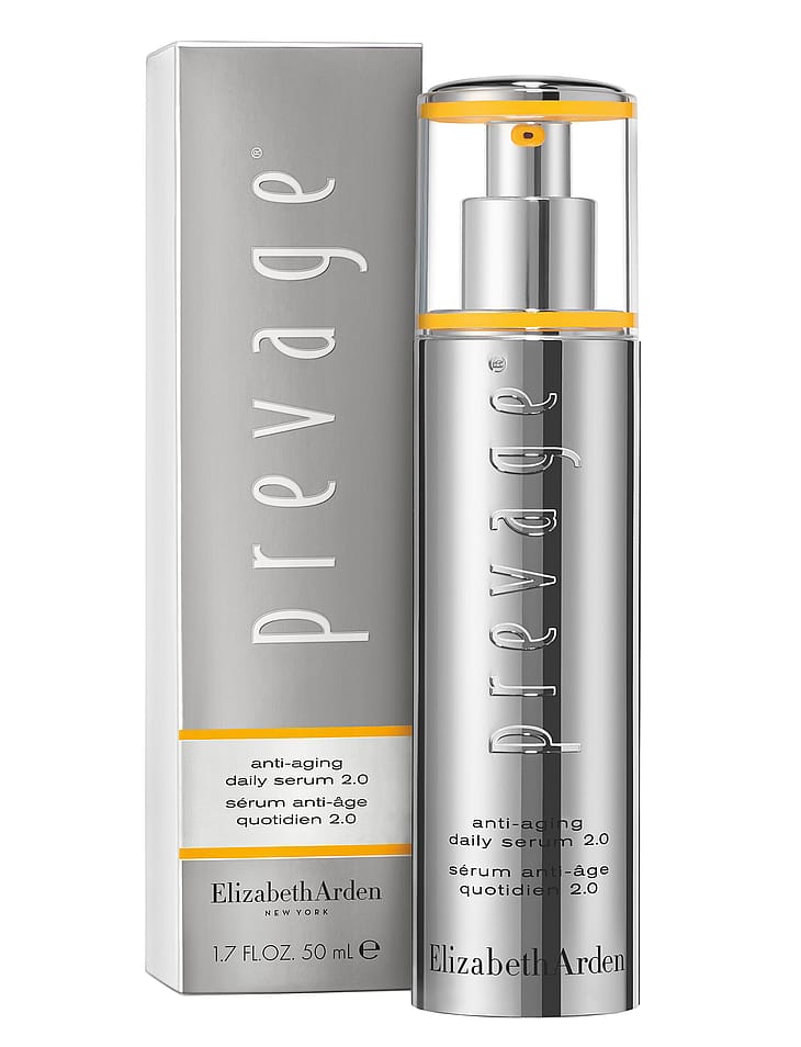 PREVAGE® Anti-Aging Daily Serum 2.0 on Elizabeth Ardenin suositun #1 anti-aging-seerumin seuraava sukupolvi, nyt päivitetyllä koostumuksella, joka tekee PREVAGE® Anti-Aging Daily -seerumista entistäkin paremman. Aktiivinen ainesosa idebenone on tieteellisesti todistettu tehokkaimmaksi antioksidantiksi, joka suojaa ulkoisia hyökkääjiä vastaan. Se on nyt yhdistetty 10 uuteen vahvistavaan ihonhoitoaineeseen, jotka vähentävät ikääntymisen merkkejä hienojen juonteiden ja ryppyjen muodossa, suojaavat ympäristövaurioilta ja antavat ihollesi nuorentuneen ulkonäön.
